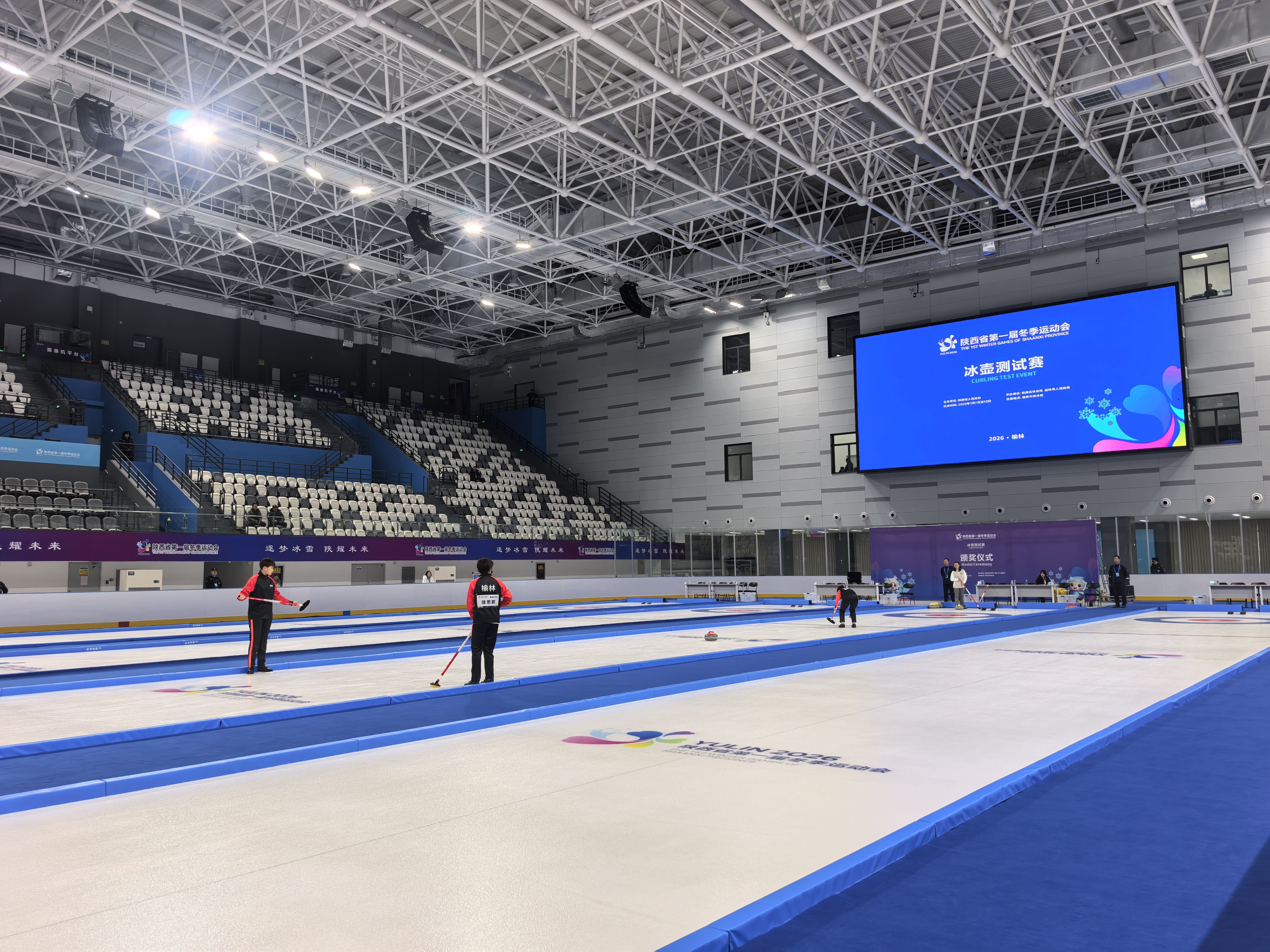 省一冬会冰壶项目测试赛技术代表杨健也对场馆给予高度评价:“来到榆林后,感受到了热情细致的接待服务。这座场馆的设计非常专业,场地修建非常精心,运动员试练效果很好。”