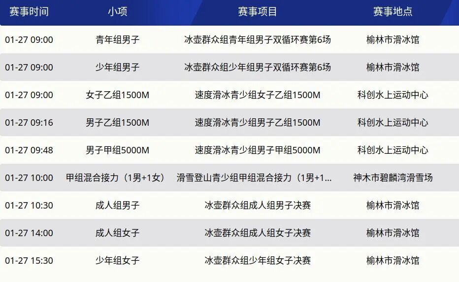 快来看省一冬会27日赛事安排,一起为运动员们加油!