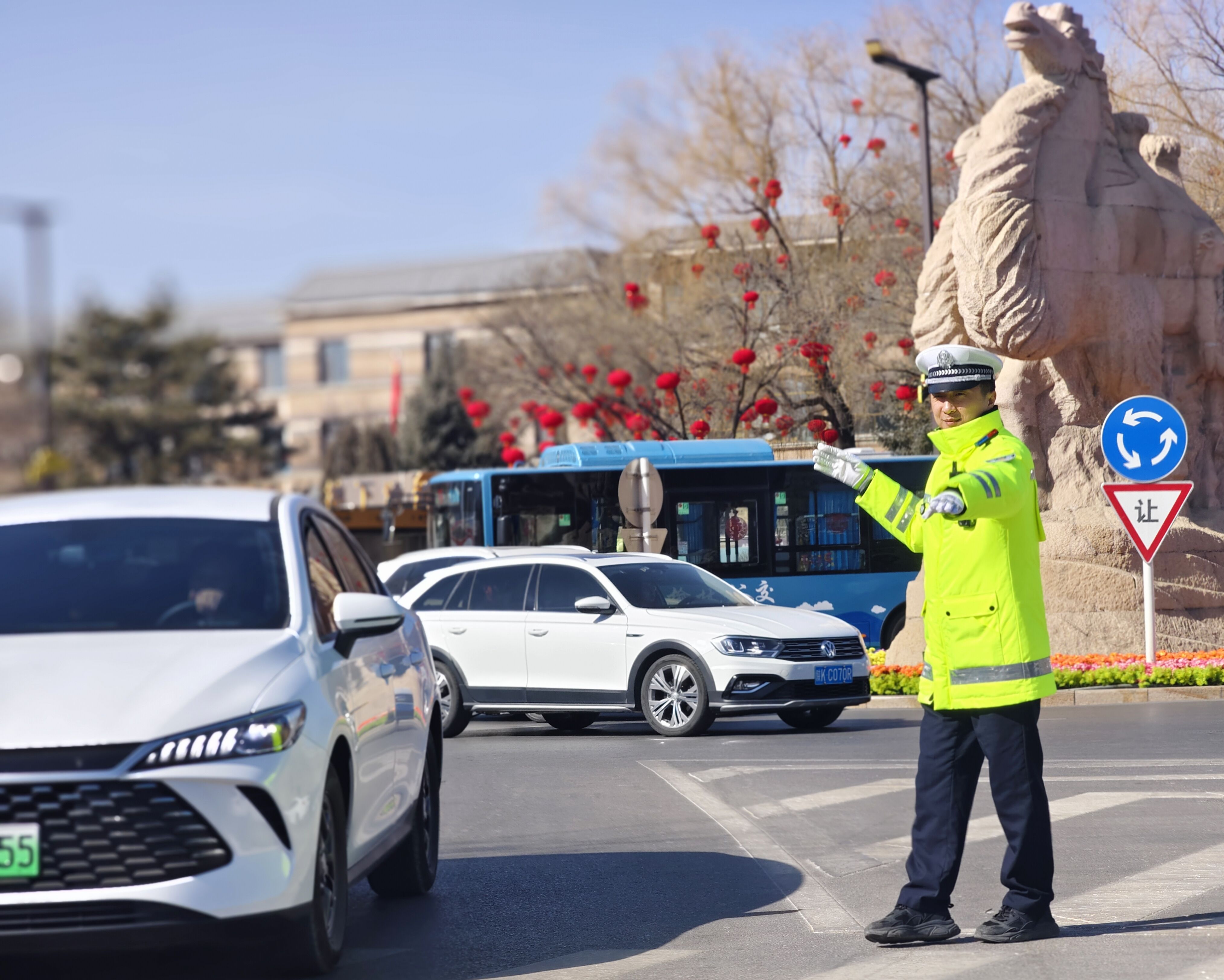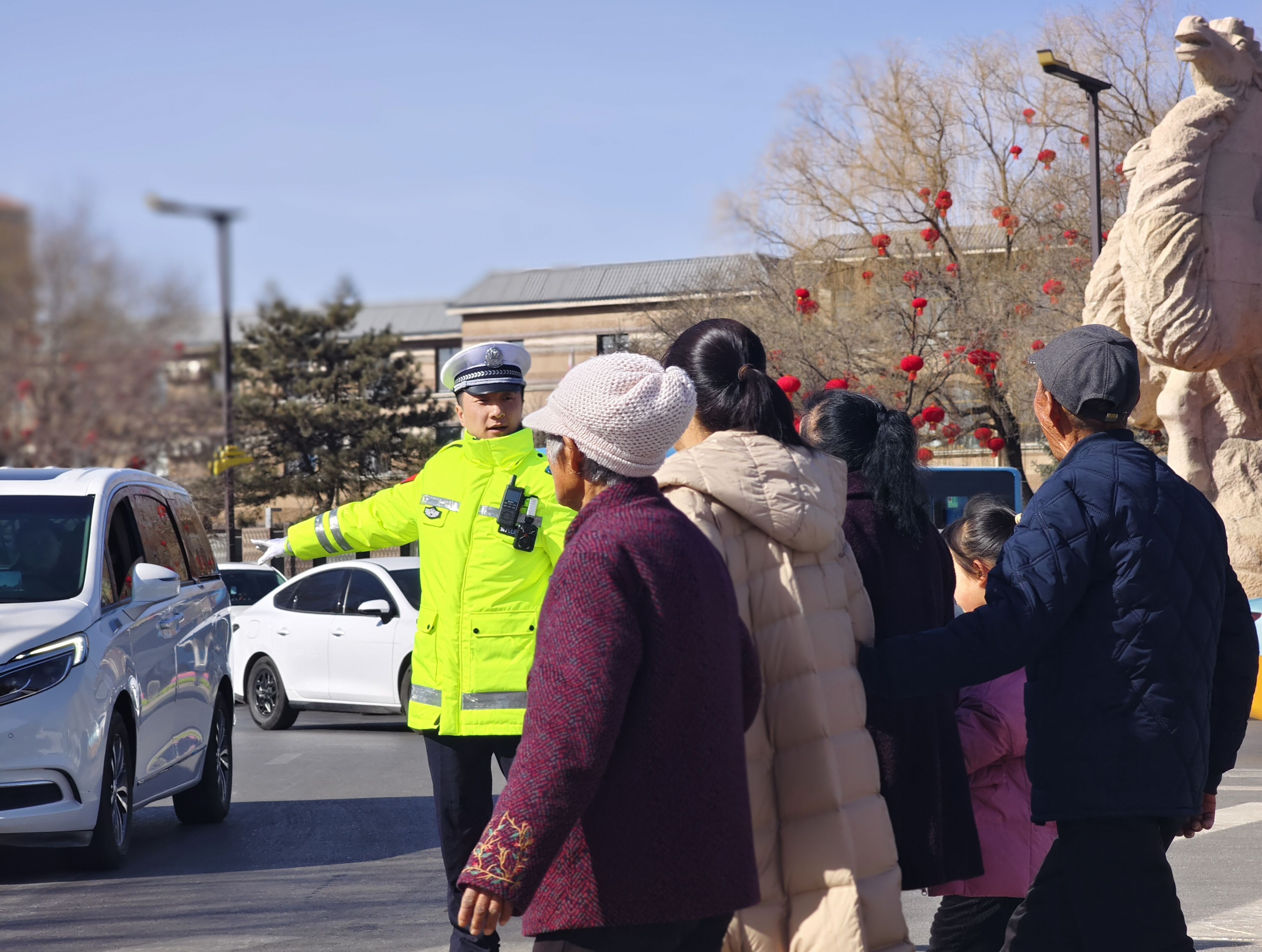 值守期间,遇到老年群众、儿童过马路,他主动上前搀扶,守护群众安全;发现路面有杂物、障碍物,他及时清理,消除安全隐患。一天下来,他反复劝导、不停奔走,声音沙哑,却始终保持饱满的工作状态。“虽然不能陪家人吃团圆饭,但能守护大家平安过年,这份奉献很有意义,看到街道整洁有序、群众出行顺畅,就是我新年最大的心愿。”刘壮坚定地说道。