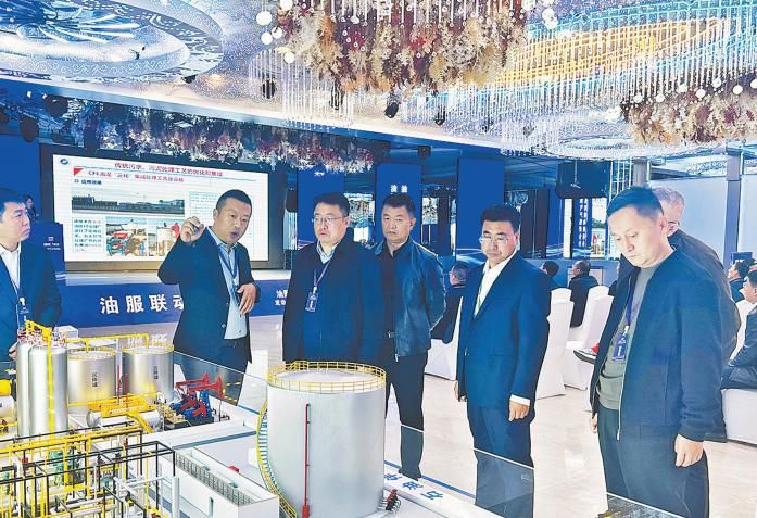 在“油服赋能·气聚定边”馆,陕西佰瑞达新能源科技发展有限公司生产经理杜伟东热情地向客商介绍:“我公司生产的石油伴生气处理装置,不仅能有效解决气体污染问题,更能将资源‘吃干榨尽’,这款产品已在定边多个油区投入试用,可将原油采收率提升20%。”