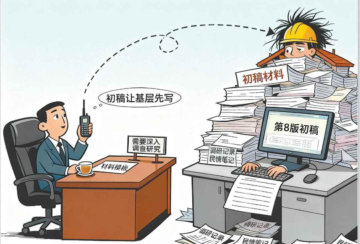 部分上级机关图省事、避繁琐,将本应亲赴一线调研撰写的文稿,交由基层“拿初稿”。看似是工作“偷懒”,实则是形式主义、官僚主义反弹的缩影。
