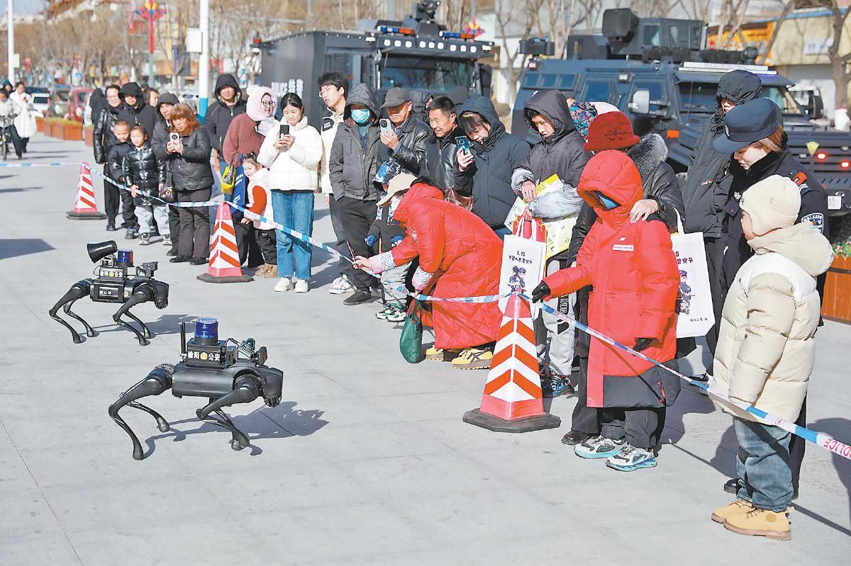 市民与警用机器狗近距离互动。 通讯员 刘天雨 摄