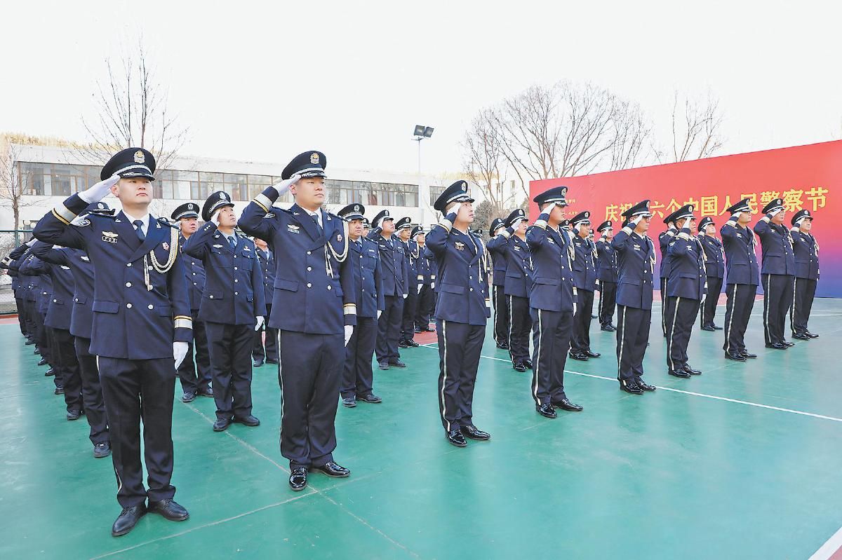 警察节升旗仪式上,民警面向警旗敬礼。通讯员 牛壮 摄