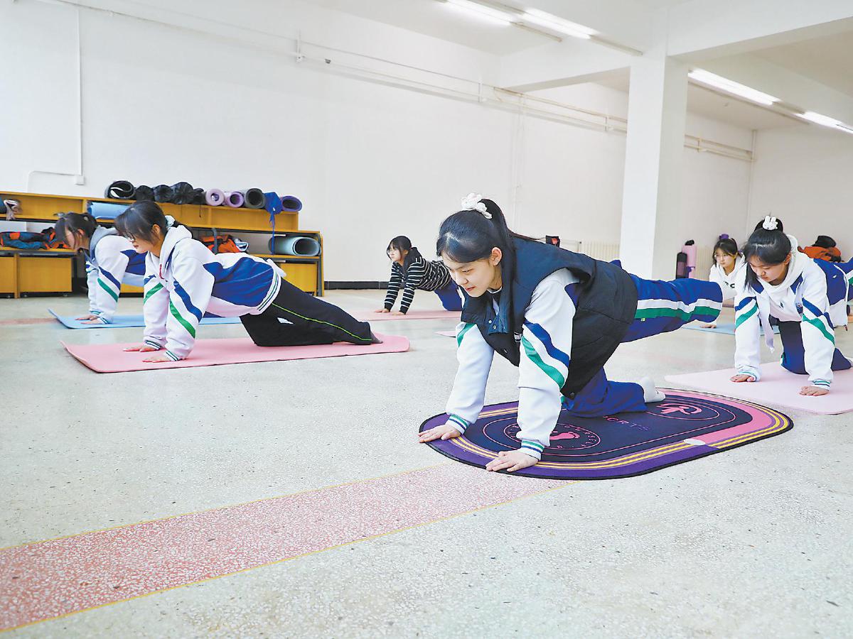 榆林高新中学学生在上瑜伽课。张瑜 摄
