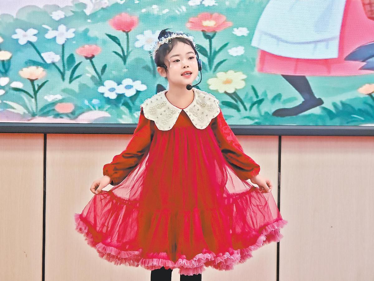 比赛现场,孩子们有的化身“传统节日文化小使者”,用稚嫩清晰的声音讲述《年兽传说》《元宵姑娘》等故事;有的变身“小演员”,以灵动的眼神、生动的动作和富有感染力的语言沉浸式演绎童话故事;还有的以团队形式登场,齐声朗诵《数九歌》《春节童谣》等经典童谣,尽显天真烂漫与蓬勃朝气。