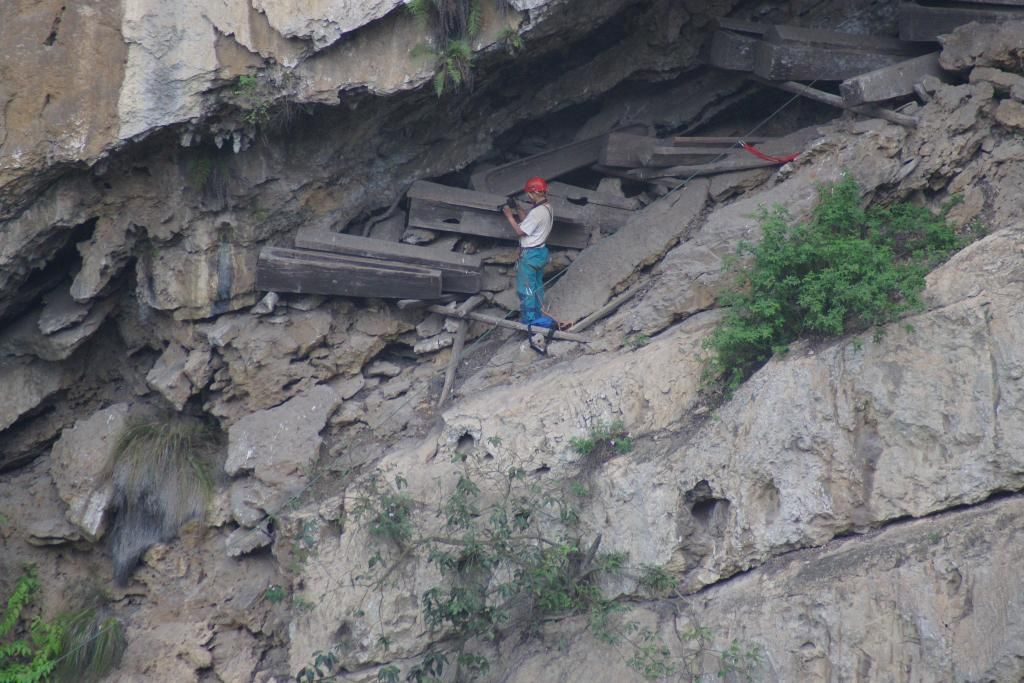 在云南昭通,考古人员在观察记录悬棺葬(资料照片)。新华社发