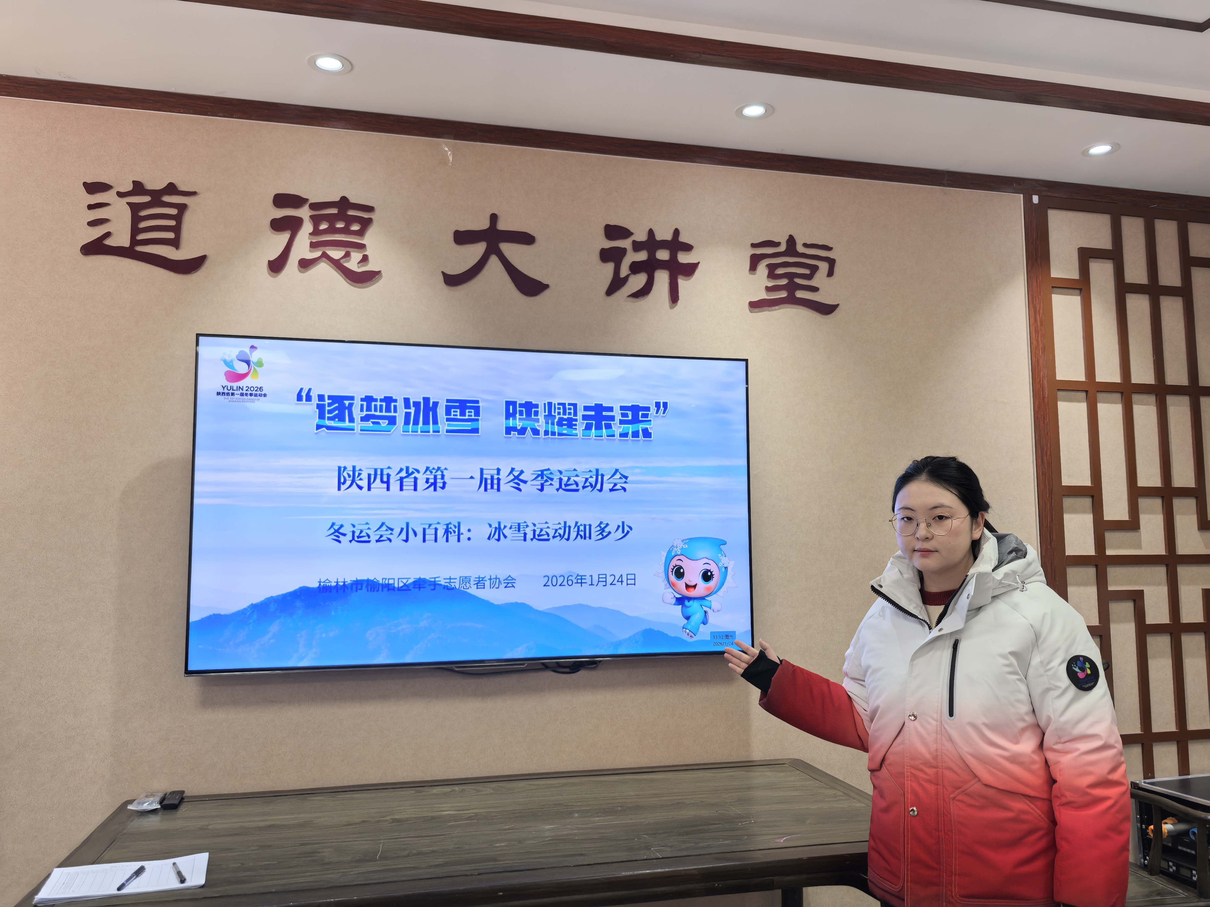 2026年1月24日,在榆林市志愿服务联合会的支持下、在共青团榆阳区委的指导下,由榆林牵手志愿者协会主办,定慧寺社区协办的以“逐梦冰雪,陕耀未来”为主题的寒假公益课堂正式启幕。本次活动以陕西省第一届冬季运动会为主题,为社区的儿童送上了一堂别开生面的冰雪运动科普课。