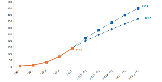 据介绍,5年以来,新型储能累计装机超过40倍。随着基数变大,增速放缓成为定局。展望“十五五”,增速虽然放缓,但庞大的基数仍将催生可观的绝对增量,预计2030年累计装机有望达到3.7亿千瓦以上。