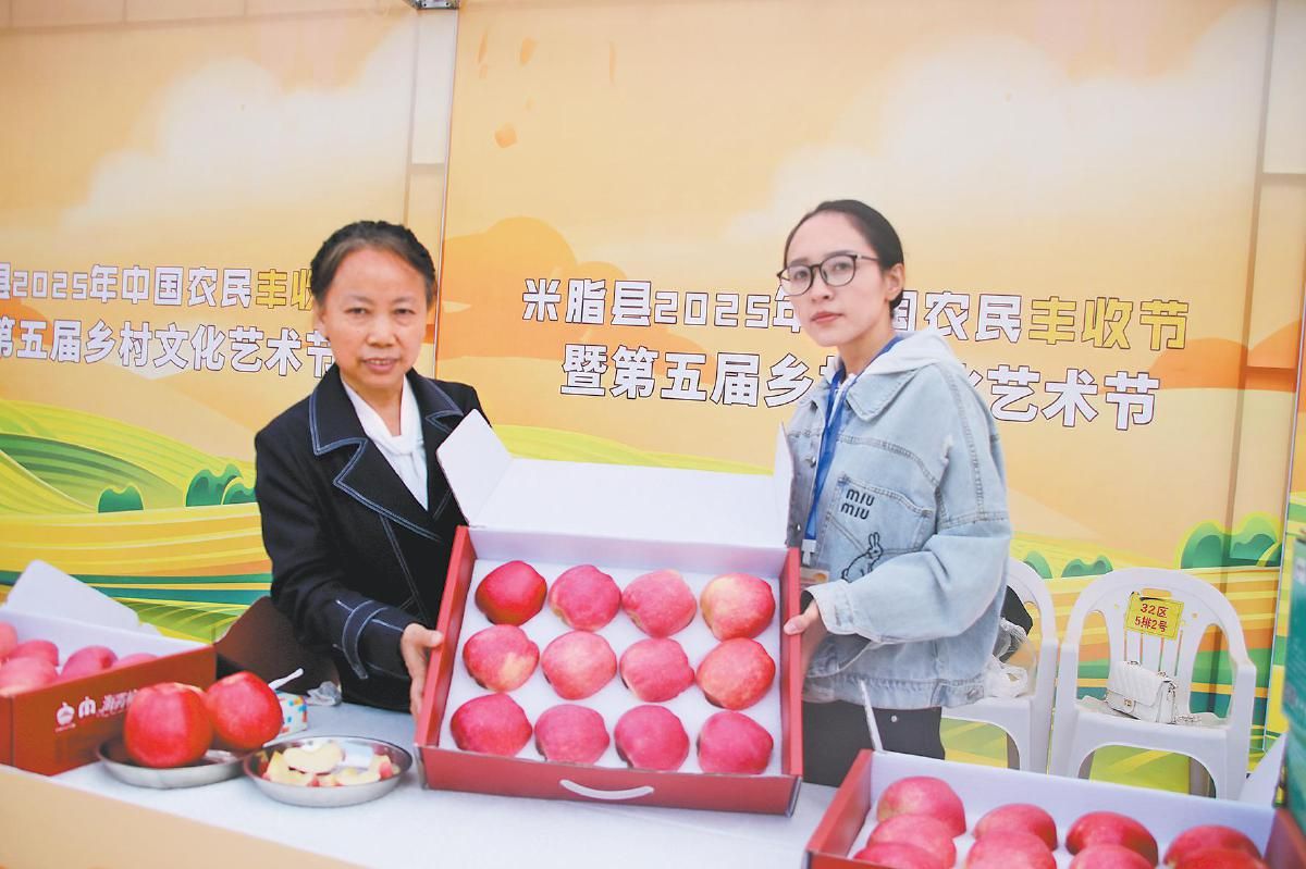 当天的活动中,农产品展示区成为人气最旺的区域之一。数十个展位整齐排列,展出了米脂小米、山地苹果、杂粮制品、蜂蜜、红枣等特色农产品,多家农业龙头企业现场提供试吃,不少游客当场扫码下单。