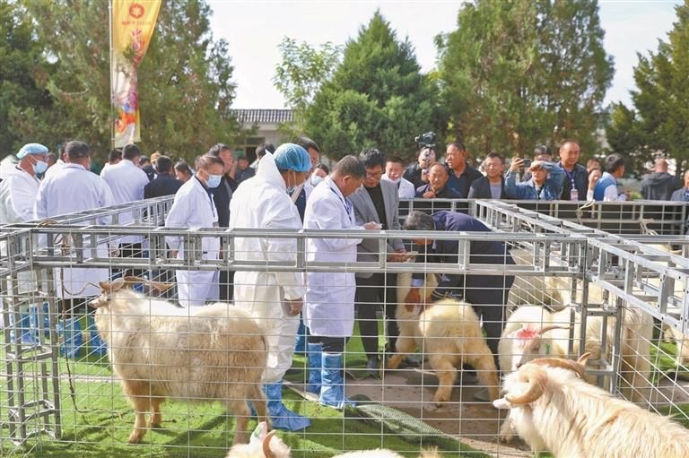 校地协作的成果很快显现。去年9月,榆林市2025年中国农民丰收节分会场陕北白绒山羊赛羊大会在黄蒿界镇举办,160只“羊明星”同台竞技,成为展示良种培育成果、激活市场活力的重要窗口。首届优质种羊拍卖会同步开槌,6只优质种羊经多轮激烈竞价全部成交,总成交价达65万元。其中,靖边县通达陕北白绒山羊良种养殖有限公司选送的成年种公羊,以36.8万元的高价摘得“标王”,被来自鄂尔多斯的养殖户胡彦兵收入囊中。
