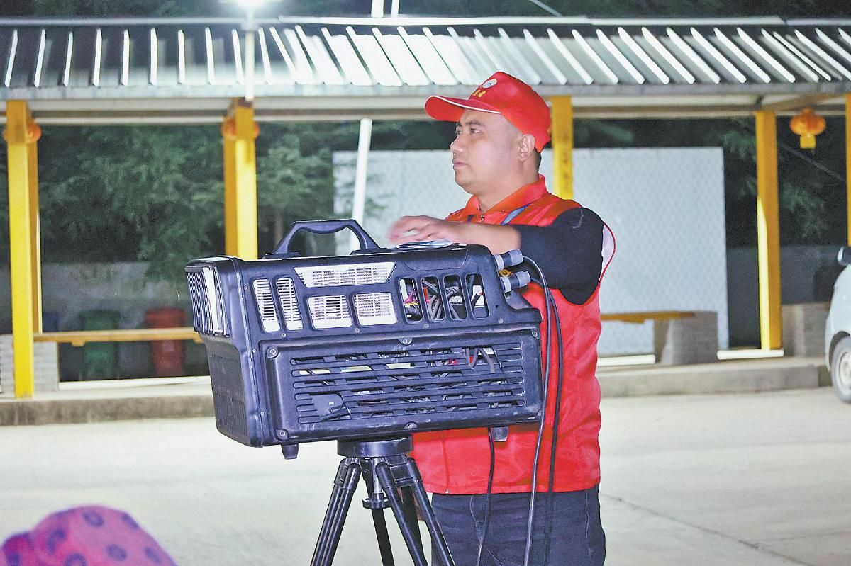 到放电影的那天,白建胜会早早地仔细检查电影放映机、幕布和音响设备,赶赴几十公里外的乡村。到了村里,他熟练地搭起幕布、调试机器、挑选影片,忙得满头大汗,也顾不上擦。这份认真,源自他对电影放映工作的热爱,更源自他与村民的“光影约定”。