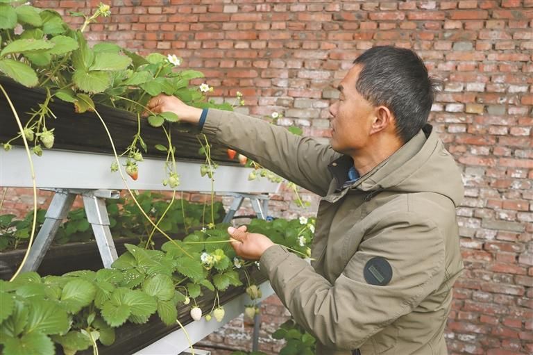 “我今年种了两个棚,一个专种草莓,另一个种时令蔬菜,收入比过去多。”李文宽说,“这两个棚一年能给家里添七八万元的收入。”像李文宽一样,许多村民都依托近郊的区位优势,搭上了设施农业的快车。