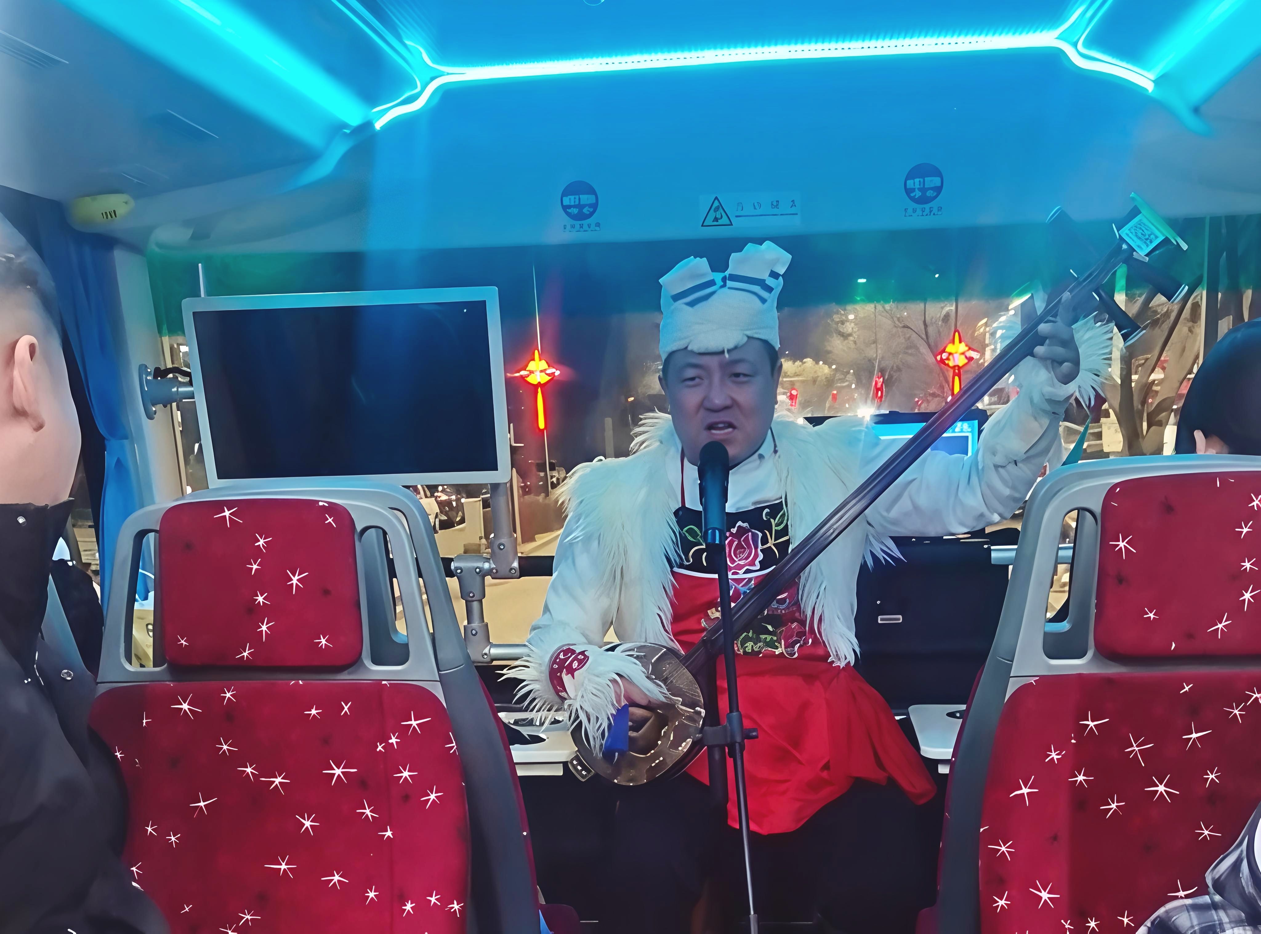 首班车上,车内安排了陕北说书、民歌演唱等具有地方特色的文艺表演,并提供了果馅、海红果等本土特色小吃,让乘客在品味地道风味的同时,以全新视角领略驼城的璀璨夜色。期待多日的学生李时允终于体验了双层巴士,她兴奋地说:“车上还准备了小点心,车内灯光很温馨。我一直盯着窗外看,今天真是太开心了!”