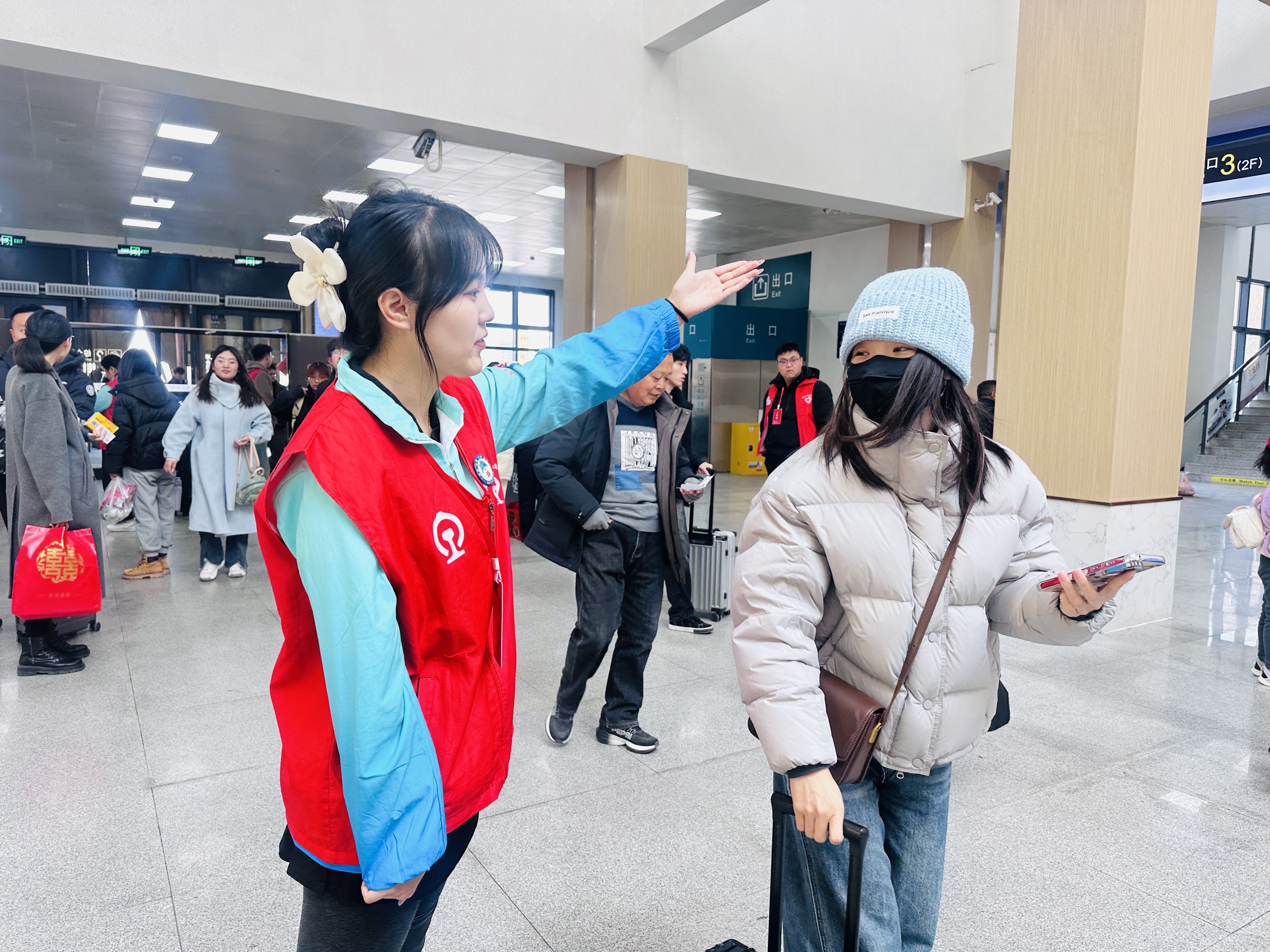 “每天在候车室内走2万多步,虽然身体疲惫,但能实实在在帮助旅客,我很开心。”志愿者王灿说。春运以来,王灿几乎每天都坚守在服务岗位上,用脚步丈量责任,用行动温暖归途。