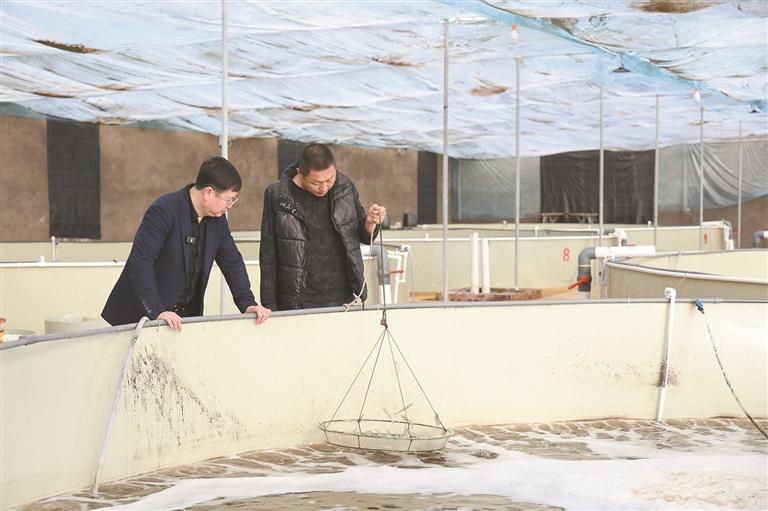 推开车间门,湿热的水汽扑面。陆基圆桶养殖池里,增氧机嗡嗡作响。工人白亮站在池边,一边用网兜捞起虾一边说:“这儿是盐碱地,过去不长庄稼,现在养起了南美白对虾,我们打工不用出远门了。”