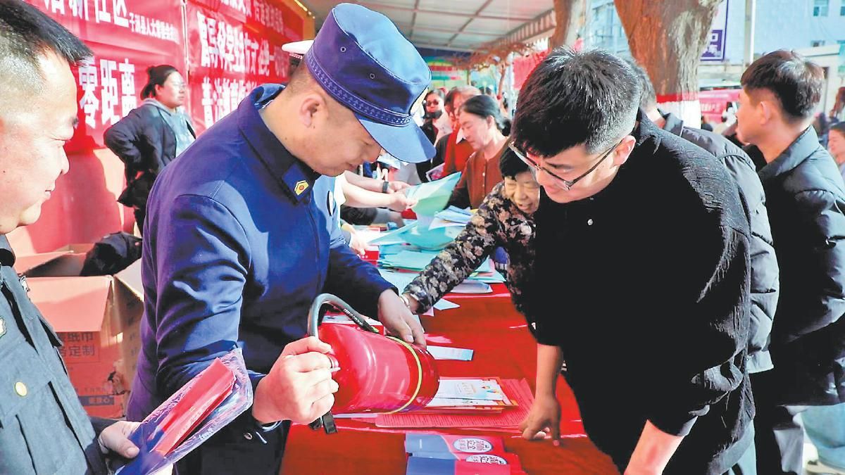 消防救援大队宣传员现场演示灭火器“提、拔、握、压”操作方法,手把手地指导居民实操,讲解家庭防火与火灾逃生技巧;交警大队结合县域交通实际,围绕电动车安全骑行、酒驾危害开展警示教育;住建、应急、司法部门分别普及燃气安全、防灾减灾及法律知识,构建全方位安全防护网。
