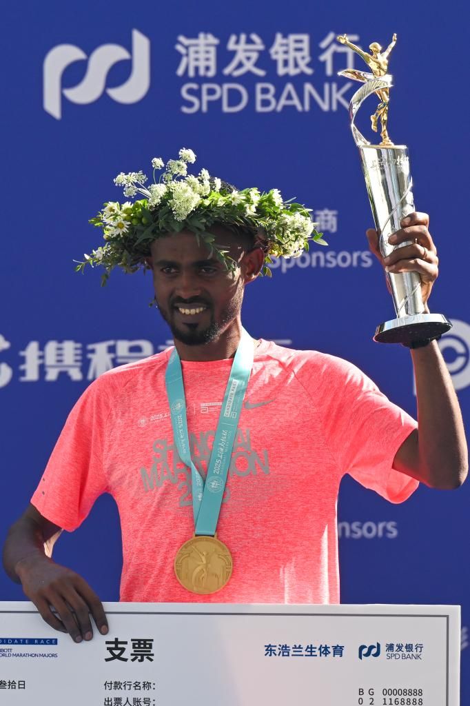 11月30日,男子组冠军埃塞俄比亚选手门格沙在颁奖仪式上。新华社记者 陈浩明 摄