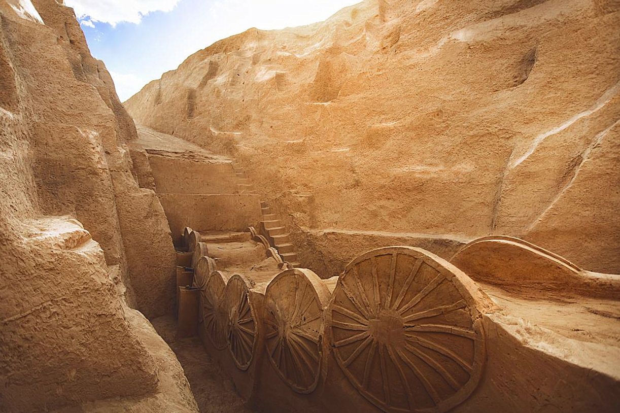 寨沟遗址及其周边已发掘马车40余辆,是殷墟之外出土马车数量最多的地区。其中,瓦窑沟M3出土的一辆双辕车,双直辕、平行,前端横置弓形轭,后端连接椭圆形车舆,辕通长4米,轮距约1.8米,车体木构末端多装饰青铜器饰件,辕、軨等部位还进行了髹漆处理,制作精美、装饰考究。这是国内发现年代最早的双辕车实物,将我国双辕车的出现时间向前推进了约1000年。