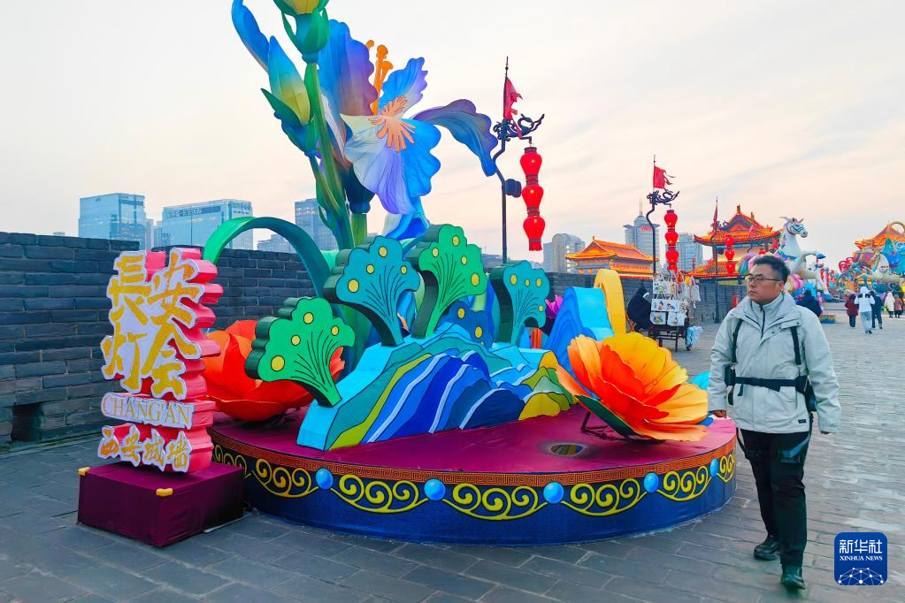 2026年1月4日,赵彬在西安城墙新年灯会期间带着城墙外骨骼机器人巡查。