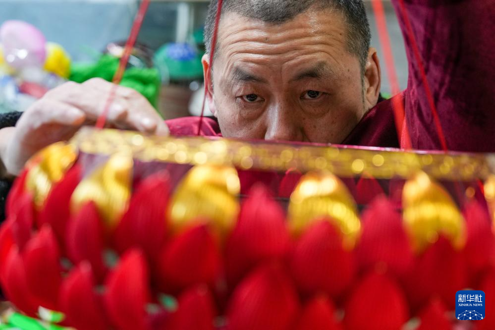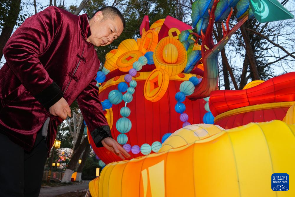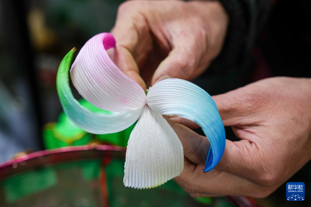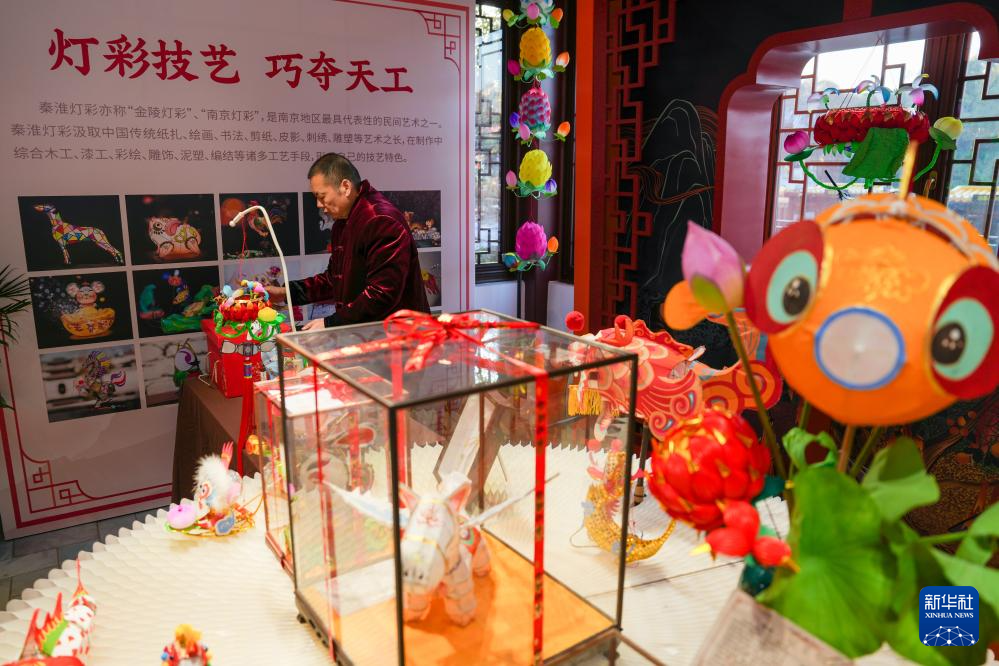 1月21日晚,第40届秦淮灯会在江苏省南京市白鹭洲公园举行亮灯仪式,陆氏灯彩第四代传承人陆敏在活动现场为观众展示秦淮灯彩制作技艺。一叠彩纸、几根铁丝,在陆敏手中经过扎制、糊裱和绘染,便化作一盏盏寓意吉祥的花灯。