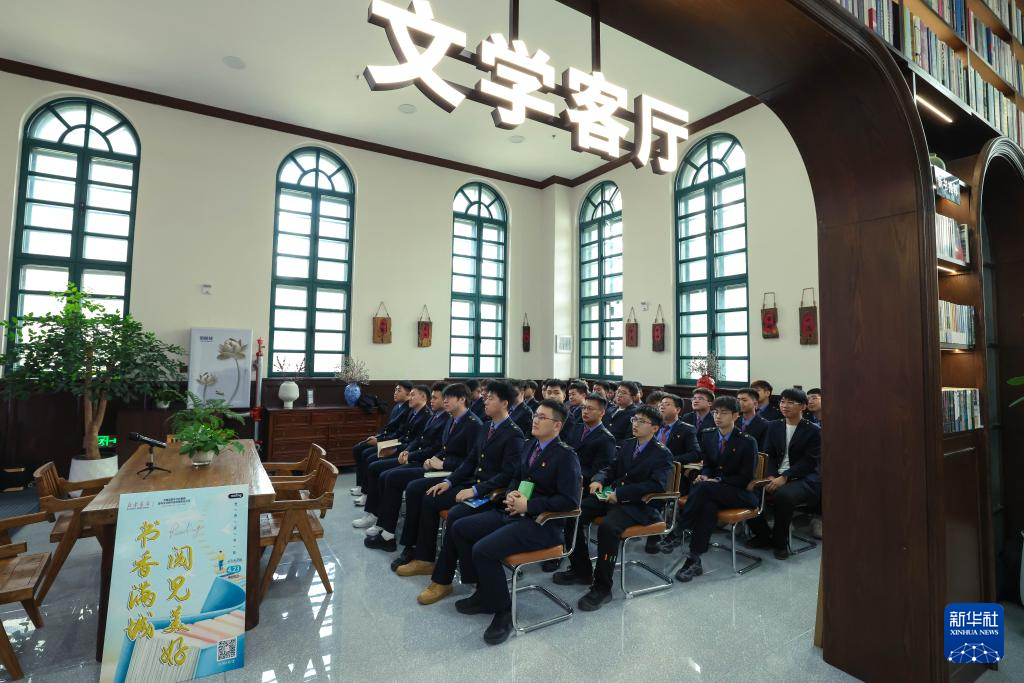 中国铁路沈阳局集团有限公司长春高铁基础设施段职工利用北书房·新华历史书店场地进行世界读书日主题读书分享活动(4月21日摄)。