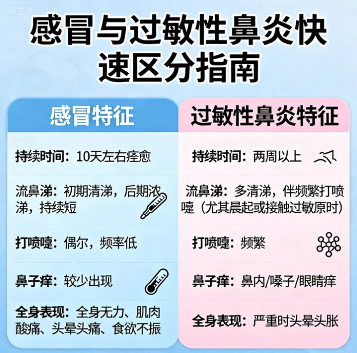 是不是总把过敏性鼻炎当感冒治?难怪症状好久都不见好。记住这5点,立马分得清。
