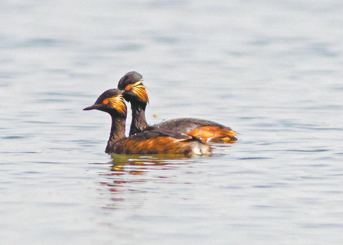湿地中的“潜水能手”,体圆头大,善收拢翅膀潜水。雄鸟头、颈、胸及两胁浓栗色,眼白如珠;雌鸟暗烟褐色,眼色淡,侧看头部羽冠高耸。它们栖居于沼泽及淡水湖泊,以水生植物和鱼、虾、贝壳类为食,分布在神木、榆阳的水域中。