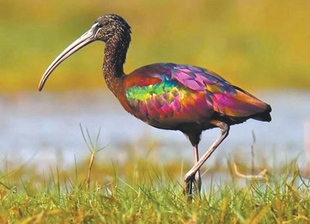 湿地中的“色彩魔术师”,体羽在阳光下会散发青铜栗色的金属光泽,间杂绿色与紫色光晕,宛如披着一件会变色的“羽衣”。它的脸部裸露,裸皮及眼圈呈铅灰色,嘴近黑色,脚绿褐色,颈、上背和肩羽色深。主要活动于沼泽湿地,以甲壳类、小鱼为食。在榆林,它们偶尔现身于榆阳区河口水库和横山区无定河湿地。
