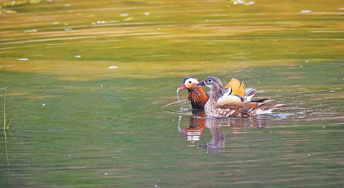 “鸳”指雄鸟,“鸯”指雌鸟。雄鸟彩羽有帆状饰羽,雌鸟灰褐。主要栖息于山地森林区的河流、湖泊、水塘、芦苇沼泽和稻田地中。主要分布在榆溪河、无定河、大理河、黄河。