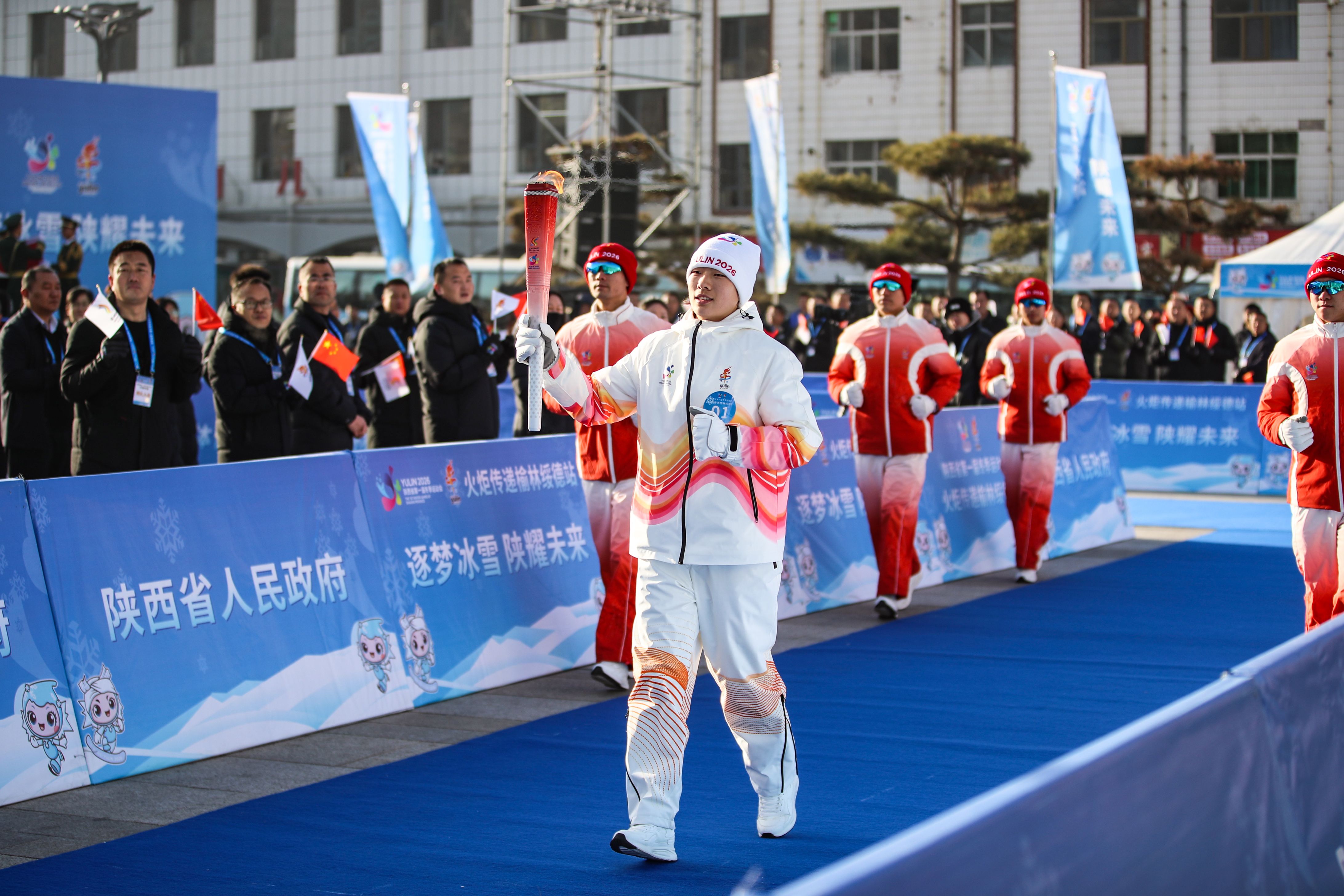 第一棒火炬手延慧是一名从绥德走出去的运动健将,她说:“作为运动员代表,在绥德参与省一冬会火炬传递,我感到激动和荣耀。这一棒火炬传递的不仅是拼搏信念,更是三秦大地的冰雪热情。希望所有健儿都能带着这束火光的力量,全力以赴、突破自我、创造佳绩。”