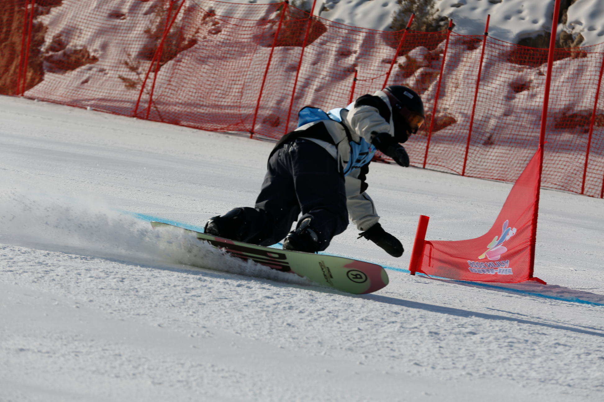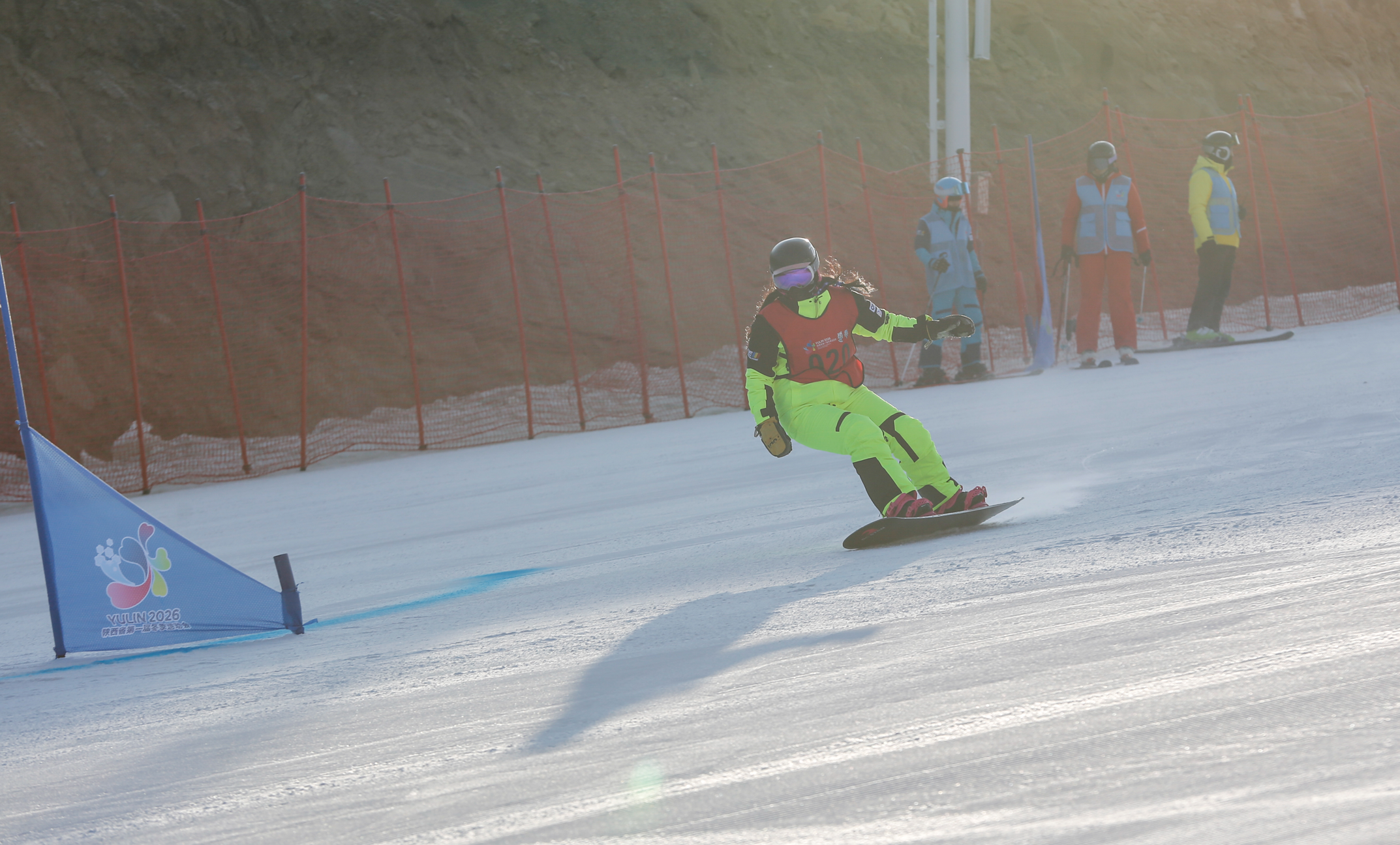 雪板扬起冰晶,身影划破寒风。1月30日,陕西省第一届冬季运动会“中国华能杯”群众组单板滑雪平行大回转(大学生组)比赛在神木碧麟湾滑雪场展开角逐。来自全省的10支大学生队伍在此竞逐,用速度与技巧,在雪道上演绎了一场力与美的冰雪较量。