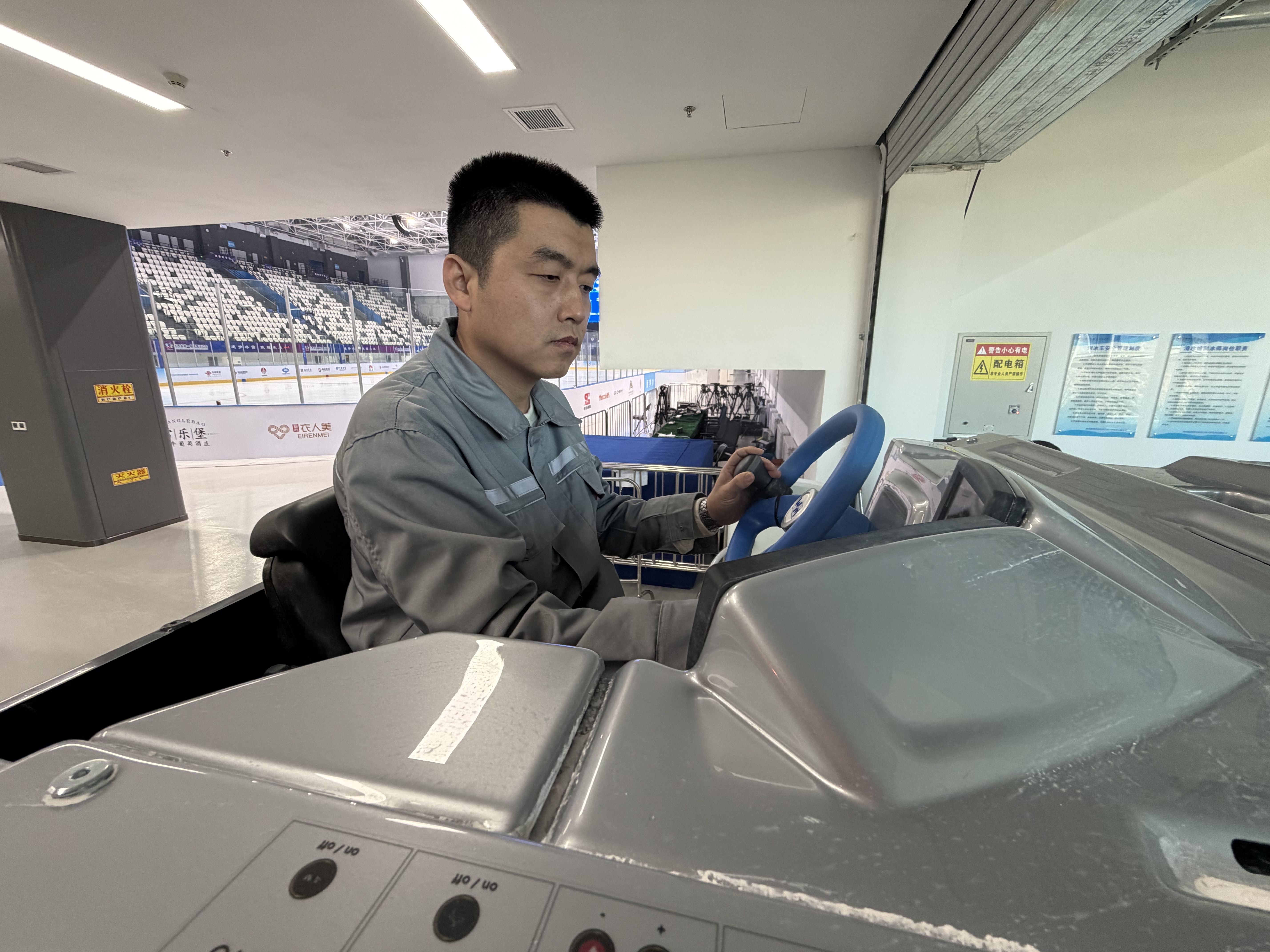 学成归来后,曹震伟就一头扎进了制冰工作中,快速掌握制冰智能螺杆机组操作,查看验收系统设备,组建滑冰馆制冰团队,全面参与制冰工作中,一步步将理论转化为守护冰场的硬实力。