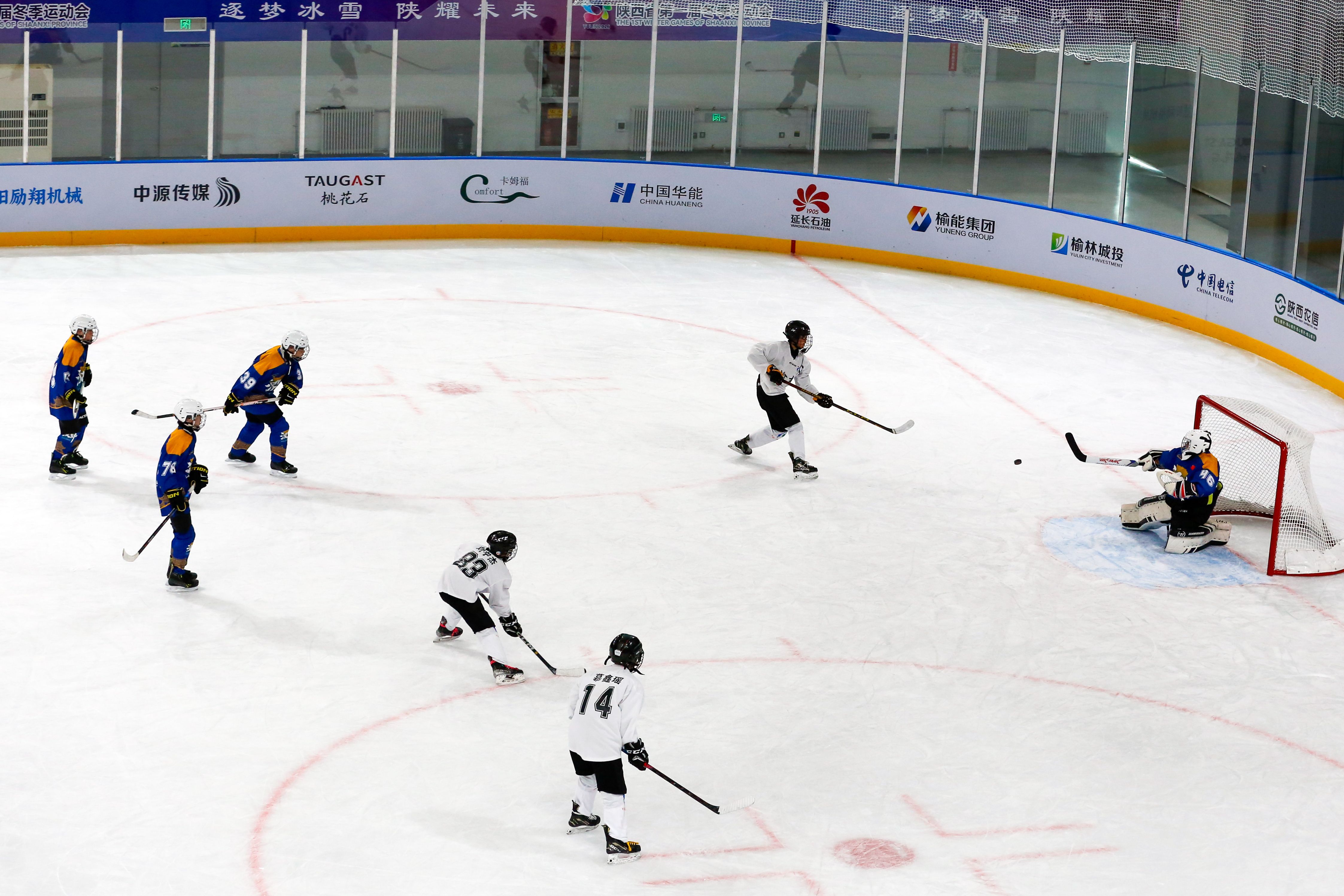 省一冬会“陕西能源杯”冰球(青少年组)甲组男子循环赛榆林队对阵汉中队。记者 李强 摄
